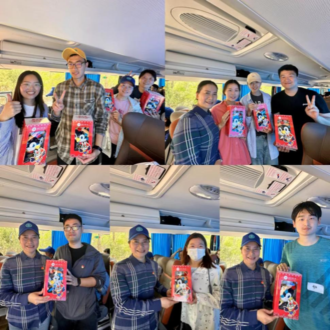 返程途中,周洪芳书记为各队颁发了奖品,各队队长讲述了队旗的设计理念,“镰刀锤头”、公式符号、绿草红花......展现着党员同志们将深耕基础学科、持续践行绿色发展理念的风采和担当。