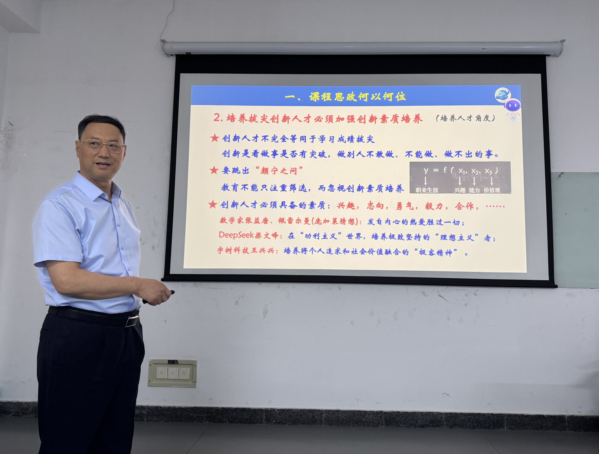 王尧教授紧扣习近平总书记对教师要成为“大先生”的期许,以课程思政 “何以,何位,何谓,何维,何为”五大核心问题为脉络,层层深入剖析课程思政的内涵与意义。他强调,课程思政是建设一流课程与专业的“必修课”,是实现“知识传授、能力培养和价值塑造”三位一体教学目标的必由之路,更是培育拔尖创新人才的重要抓手。同时,针对教学实践“四个误区”,分享20多个思政元素融入案例。