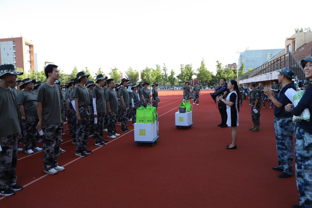 9月2日下午,数统力公司党委书记周洪芳与副书记初旭新来到北操场,慰问正在紧张军训中的十九连新生。