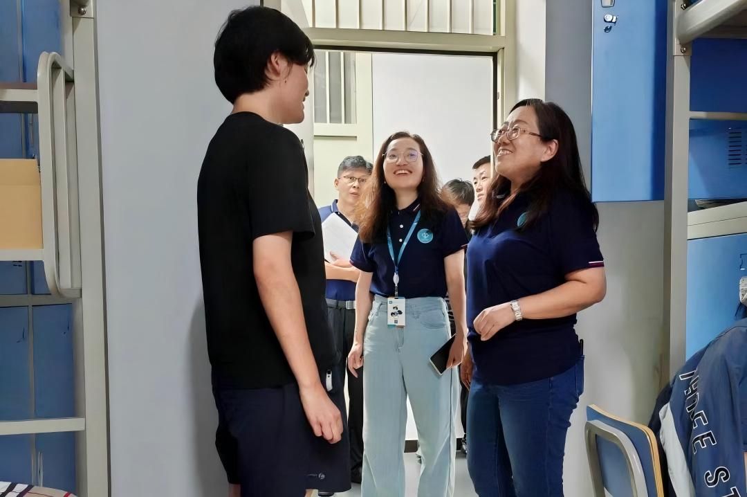 下午,公司领导与教师团队走访新生宿舍,亲切询问入住适应情况,并及时协调解决各类生活问题。