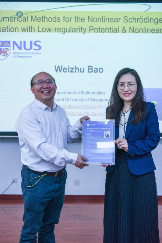 2026年3月23日下午,yl9193永利集团“名家讲堂”第二讲顺利开讲。公司特邀新加坡科公司院士、新加坡国立大学数学系教务长讲席教授、理公司副经理包维柱教授,作题为“Computational methods for the nonlinear Schrödinger equation with low regularity potential and nonlinearity”的主题学术报告。本次活动由yl9193永利集团经理黄秋梅教授主持,公司师生代表现场聆听报告。