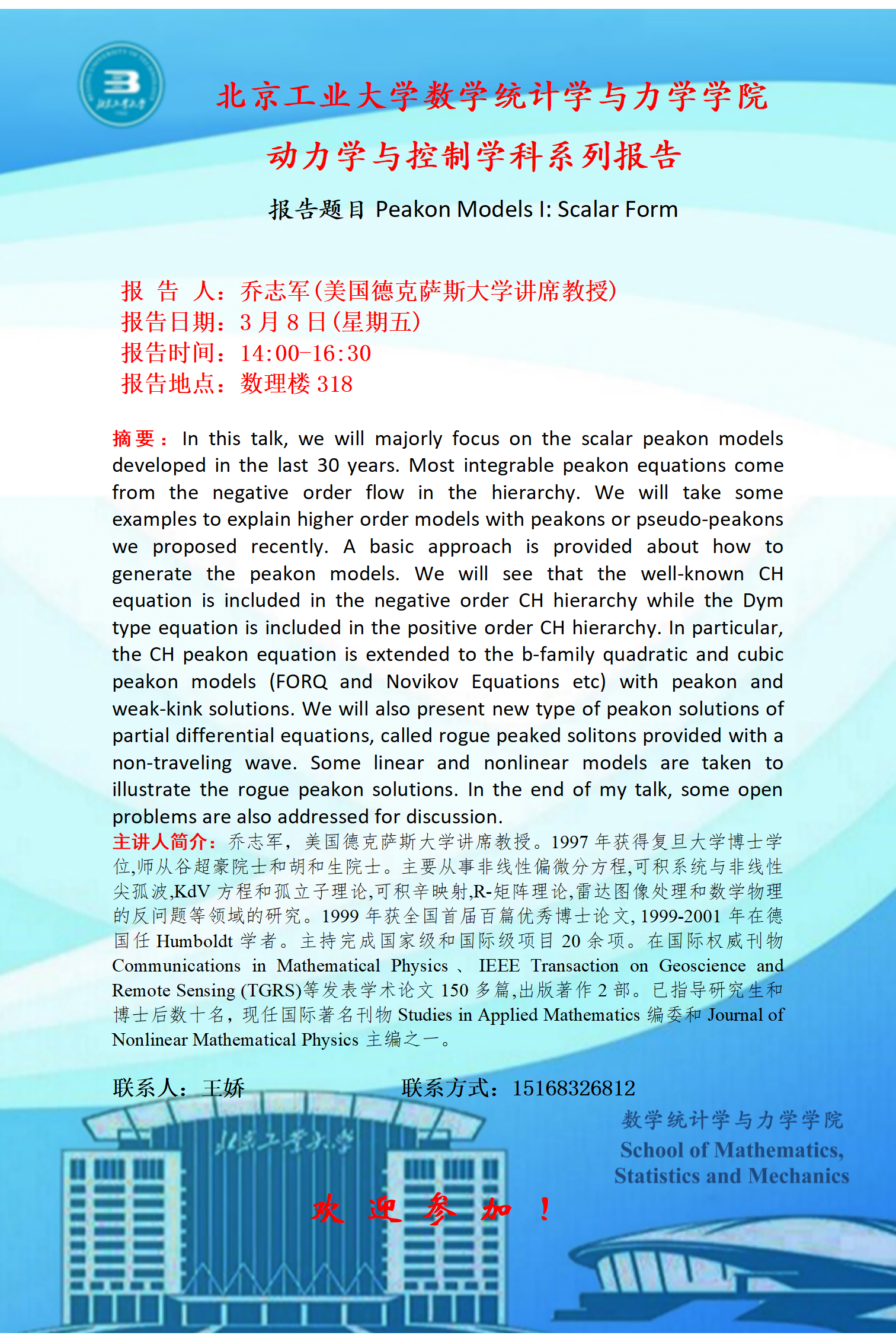 【数统力|学术报告】——Peakon Models:Scalar Form