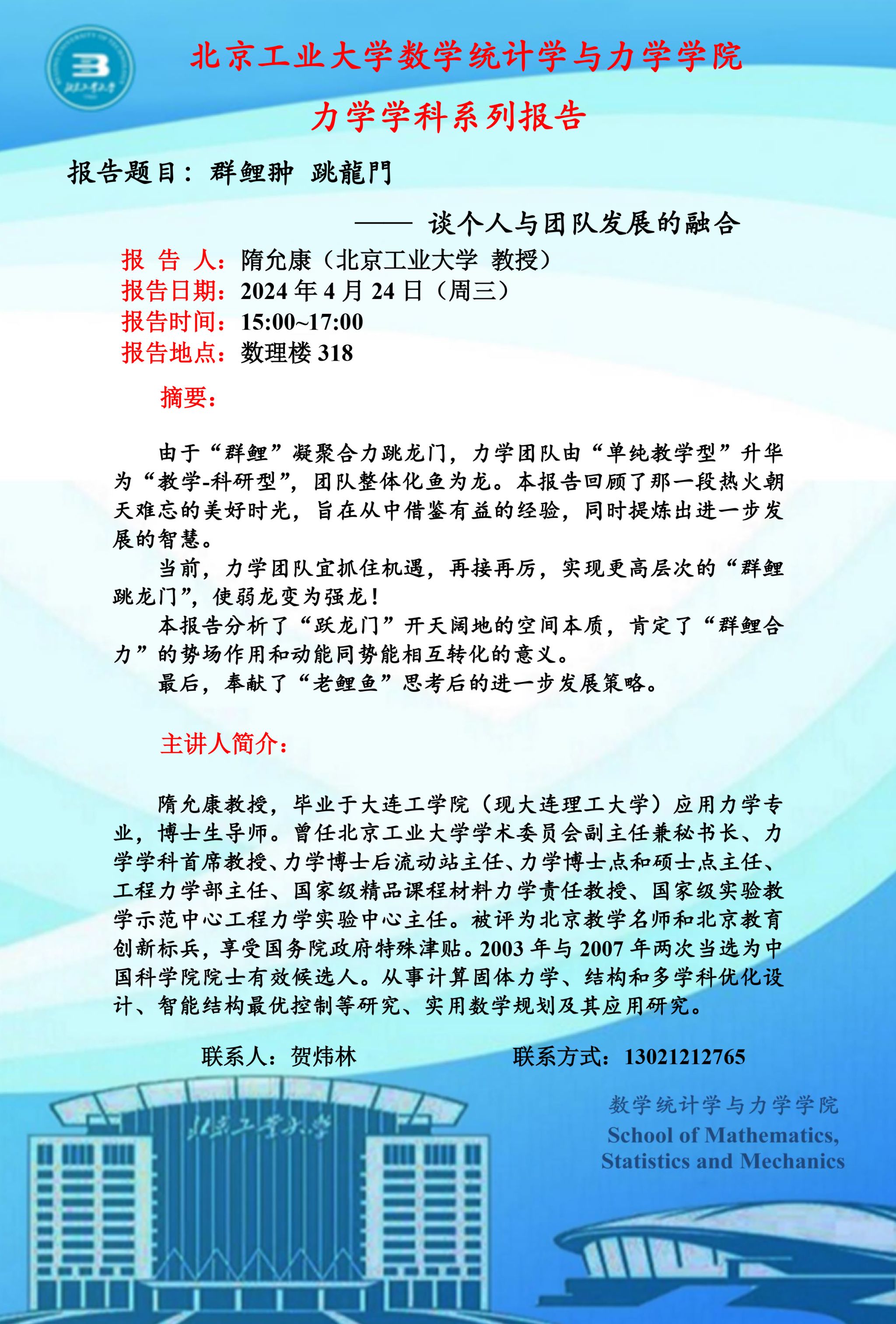 【数统力|学术报告】——“群鲤翀 跳龍門”谈个人与团队发展的融合