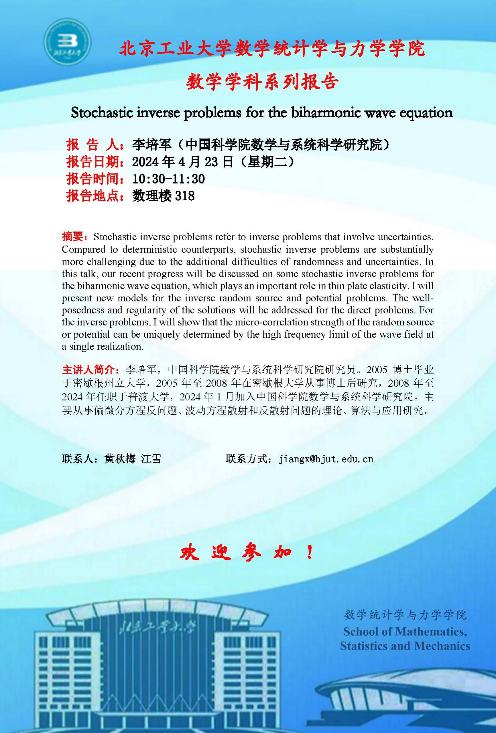 【数统力|学术报告】——Stochastic inverse problems for the biharmonic wave equation