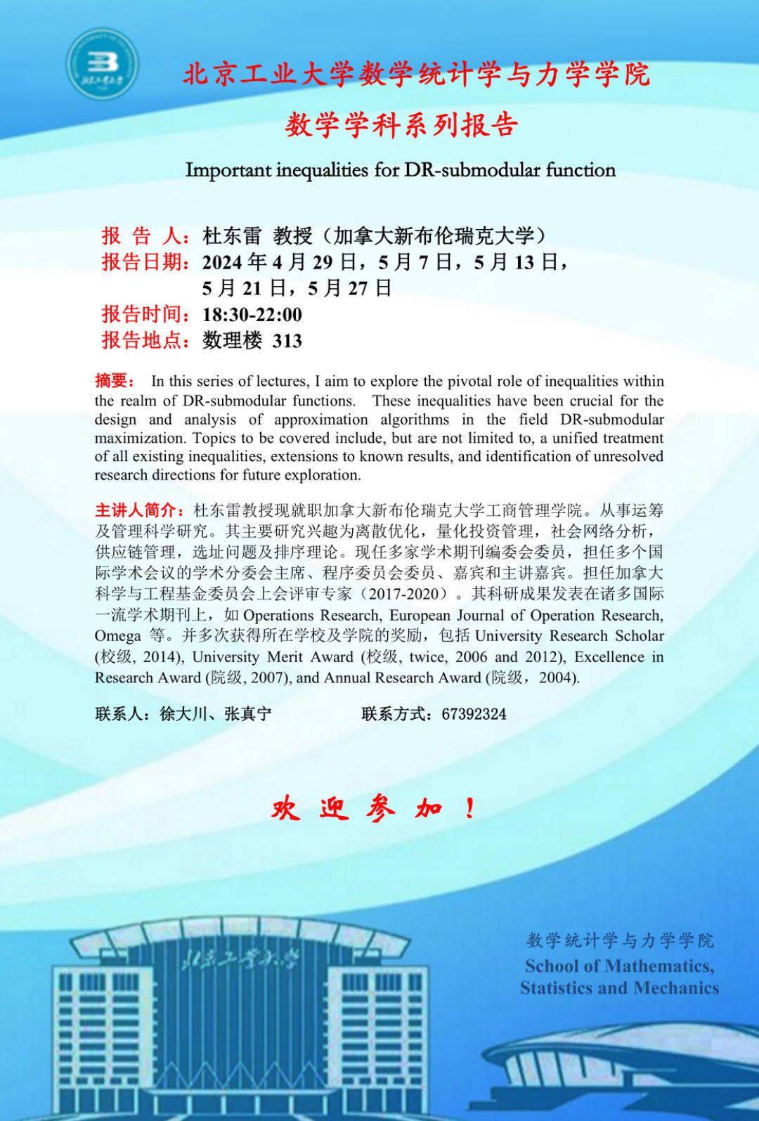 【数统力|学术报告】——Important inequalities for DR-submodular function