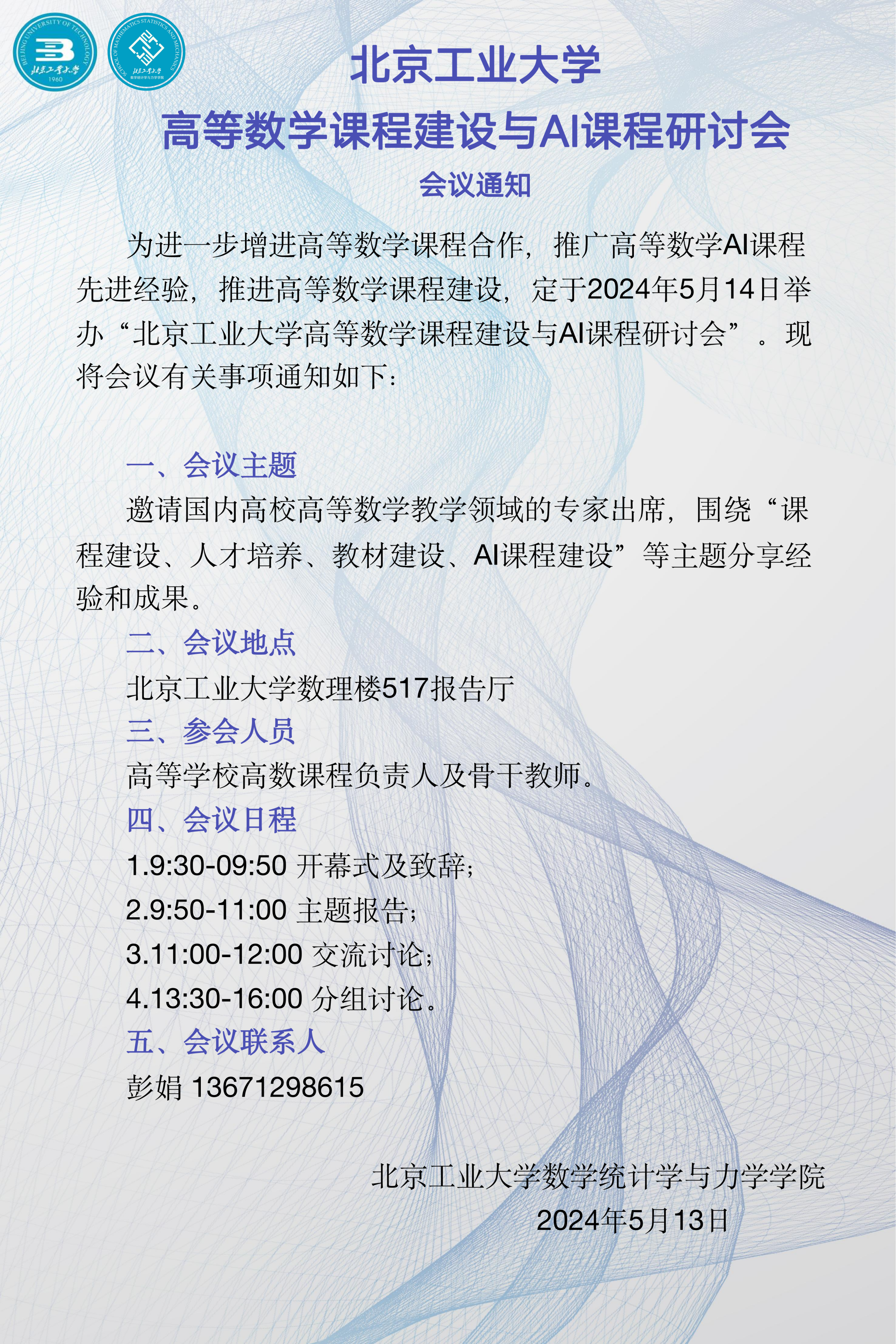 【数统力|学术报告】——高等数学课程建设与AI课程研讨会