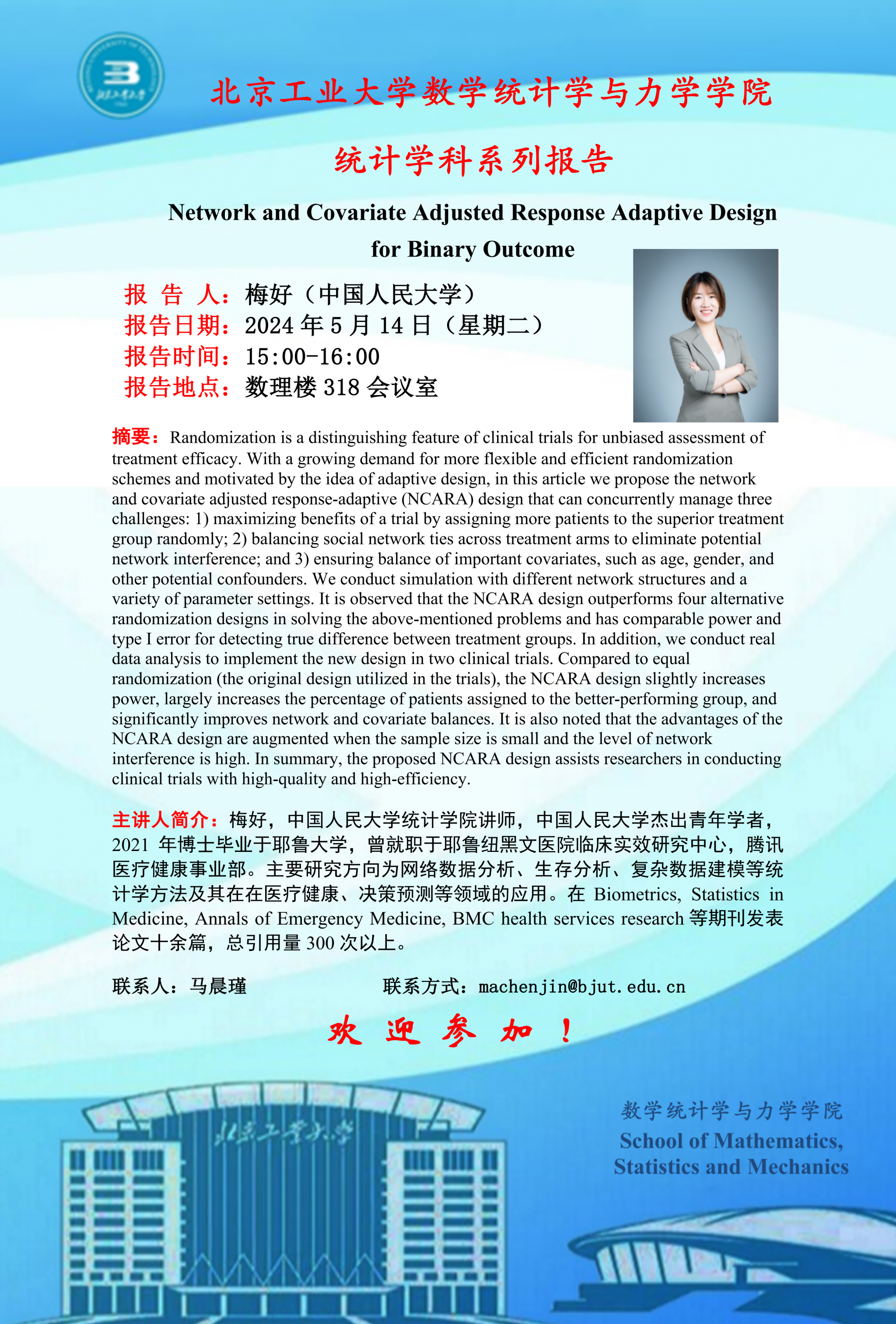 【数统力|学术报告】——Network and Covariate Adjusted Response Adaptive Design for Binary Outcome
