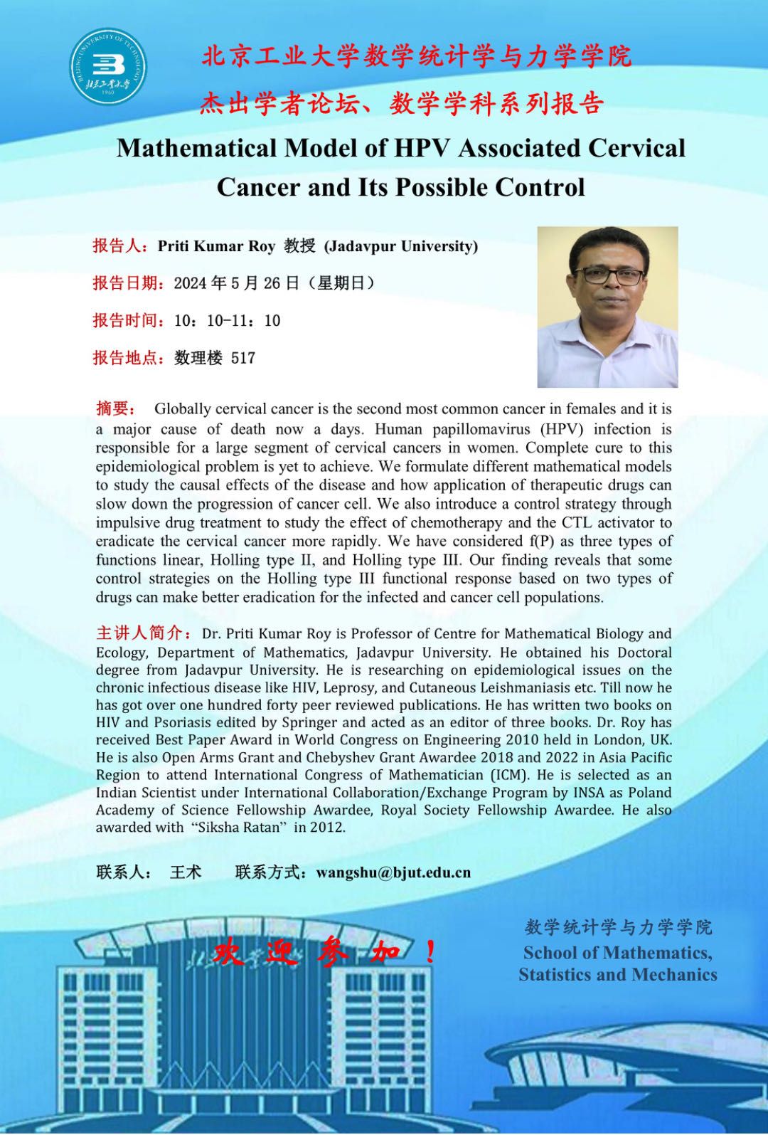 【数统力|学术报告】——Mathematical Model of HPV Associated Cervical Cancer and Its Prossible Control