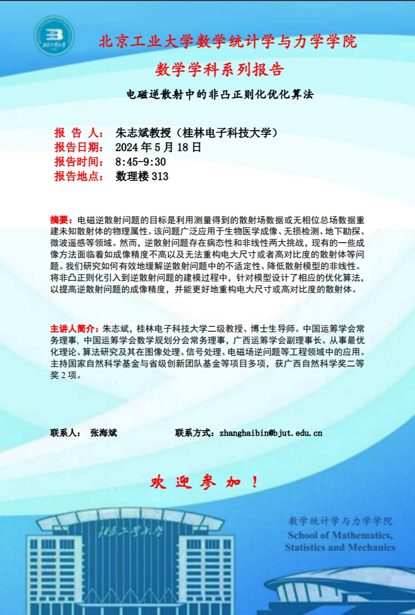 【数统力|学术报告】——电磁逆散射中的非凸正则化优化算法