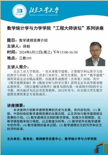 【数统力|学术报告】“工程大师讲坛”系列讲座-数学建模竞赛介绍