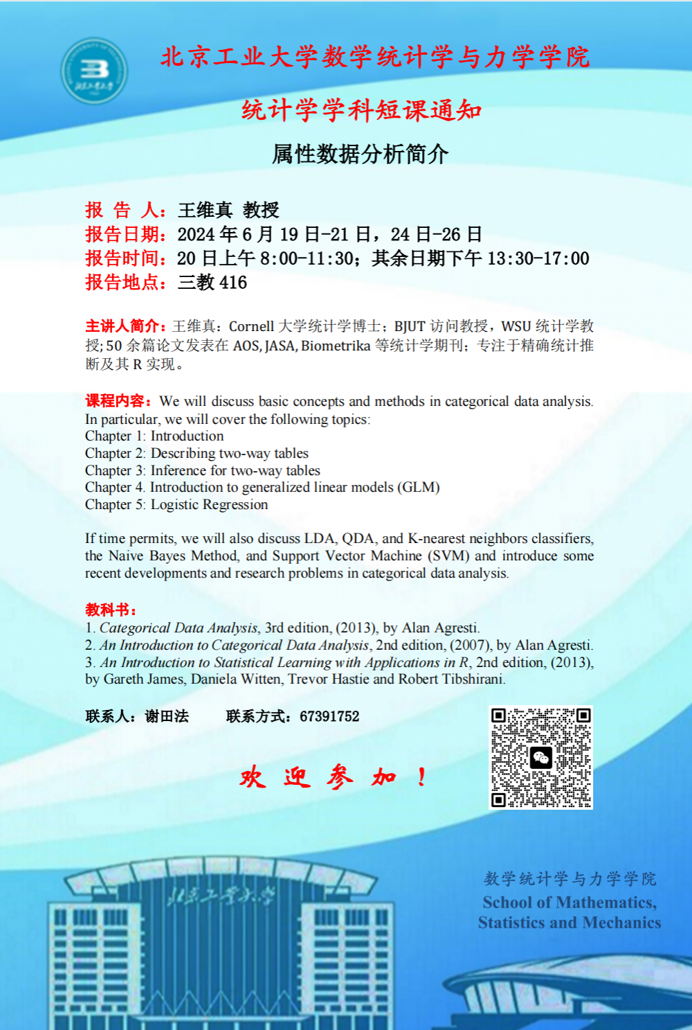 【数统力|学术报告】——统计学学科短课《属性数据分析简介》