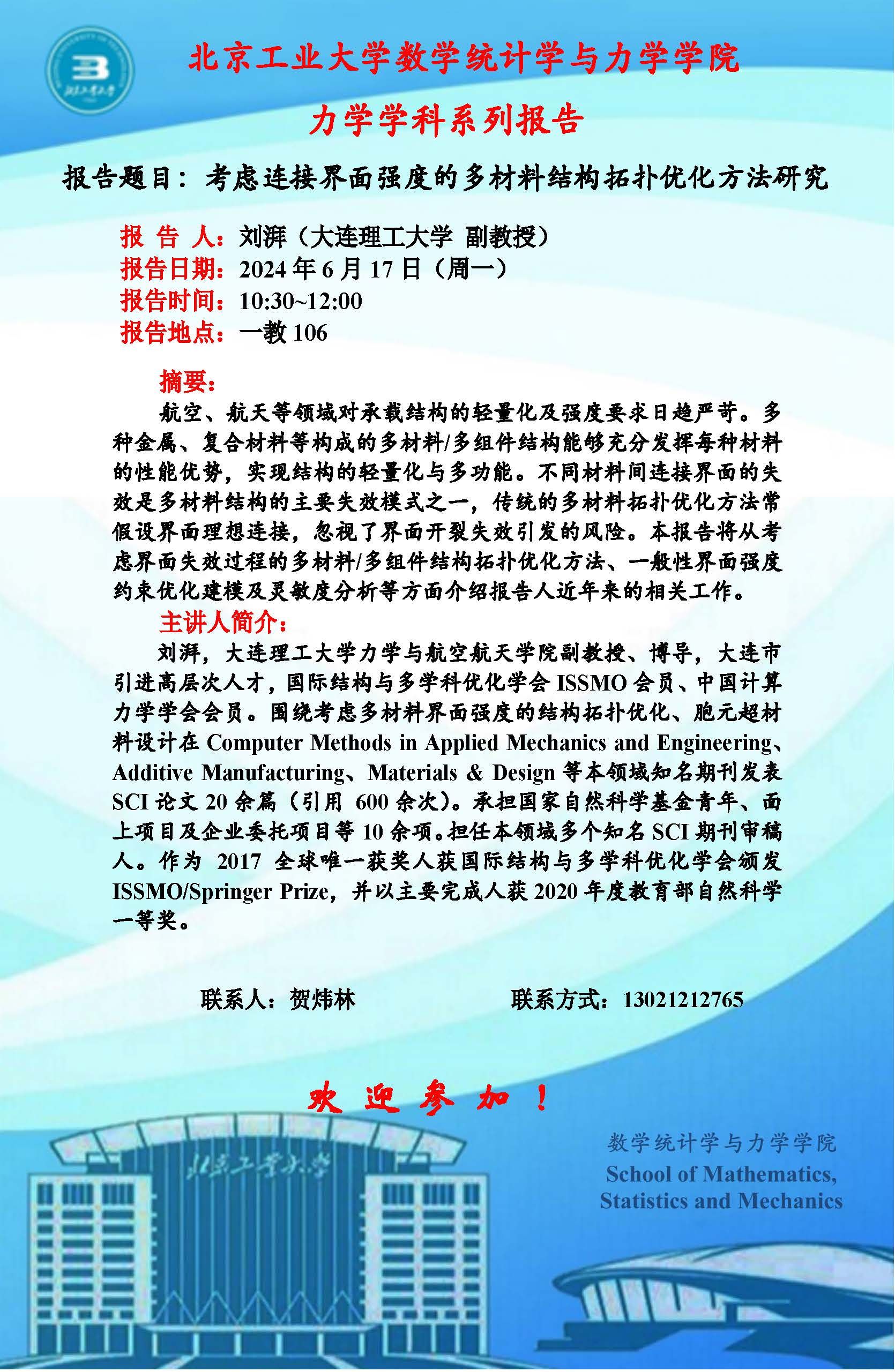 【数统力|学术报告】——考虑连接界面强度的多材料结构拓扑优化方法研究
