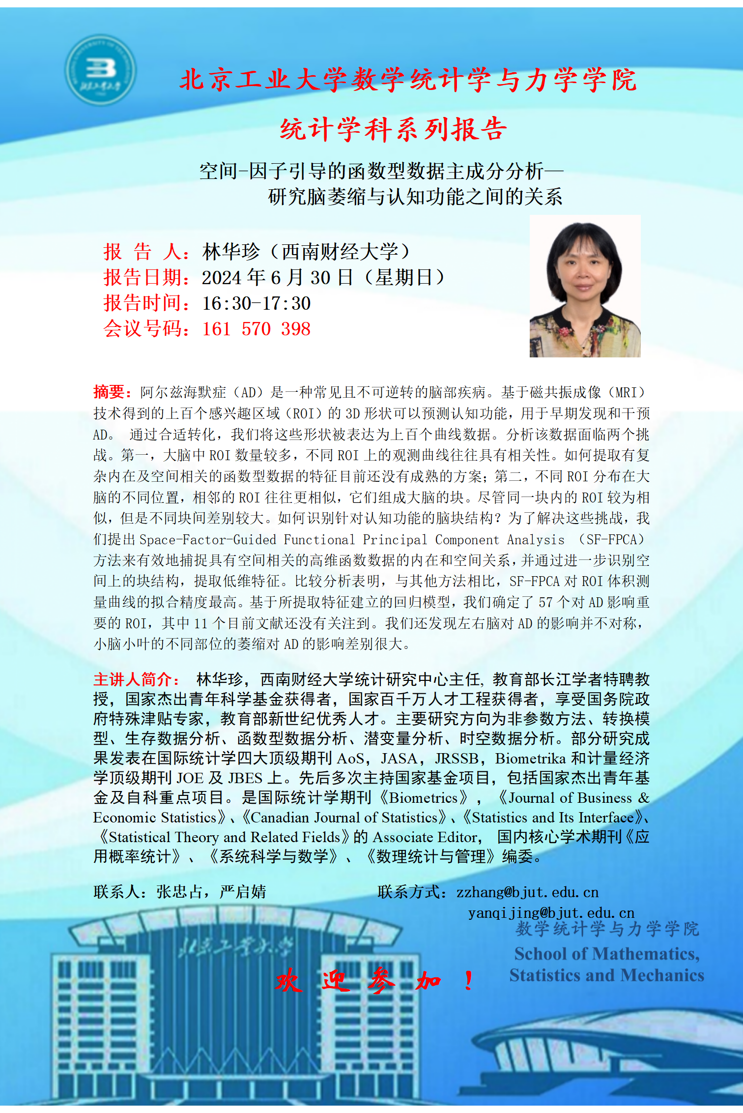 【数统力|学术报告】——空间-因子引导的函数型数据主成分分析-研究脑萎缩与认知功能之间的关系