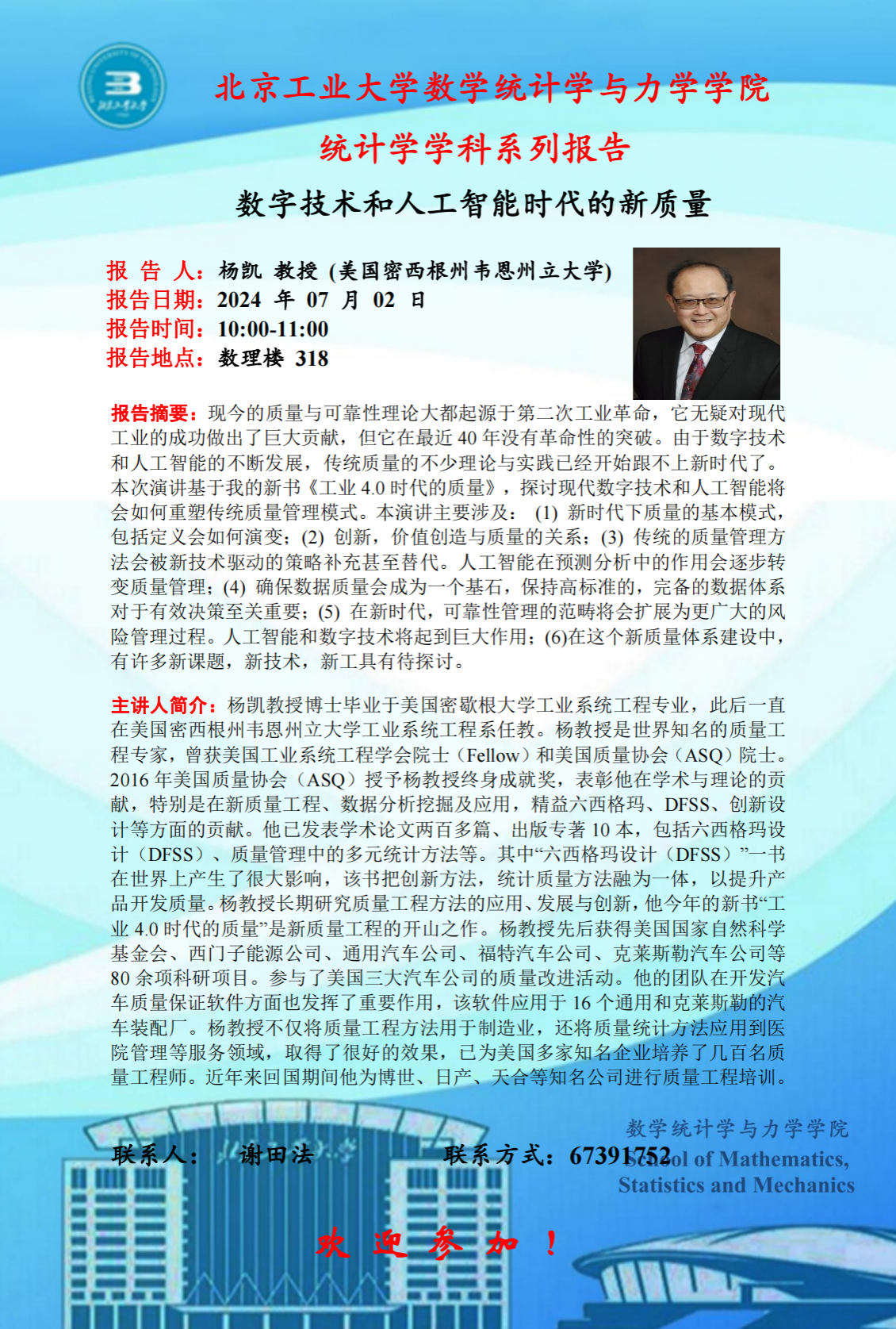 【数统力|学术报告】——数字技术和人工智能时代的新质量