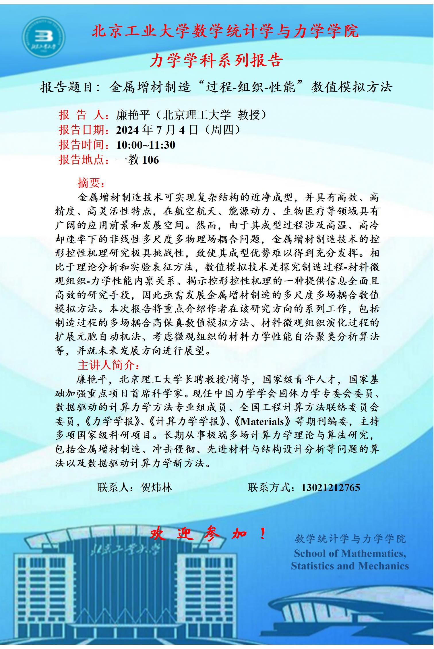 【数统力|学术报告】——金属增材制造“过程-组织-性能”数值模拟方法