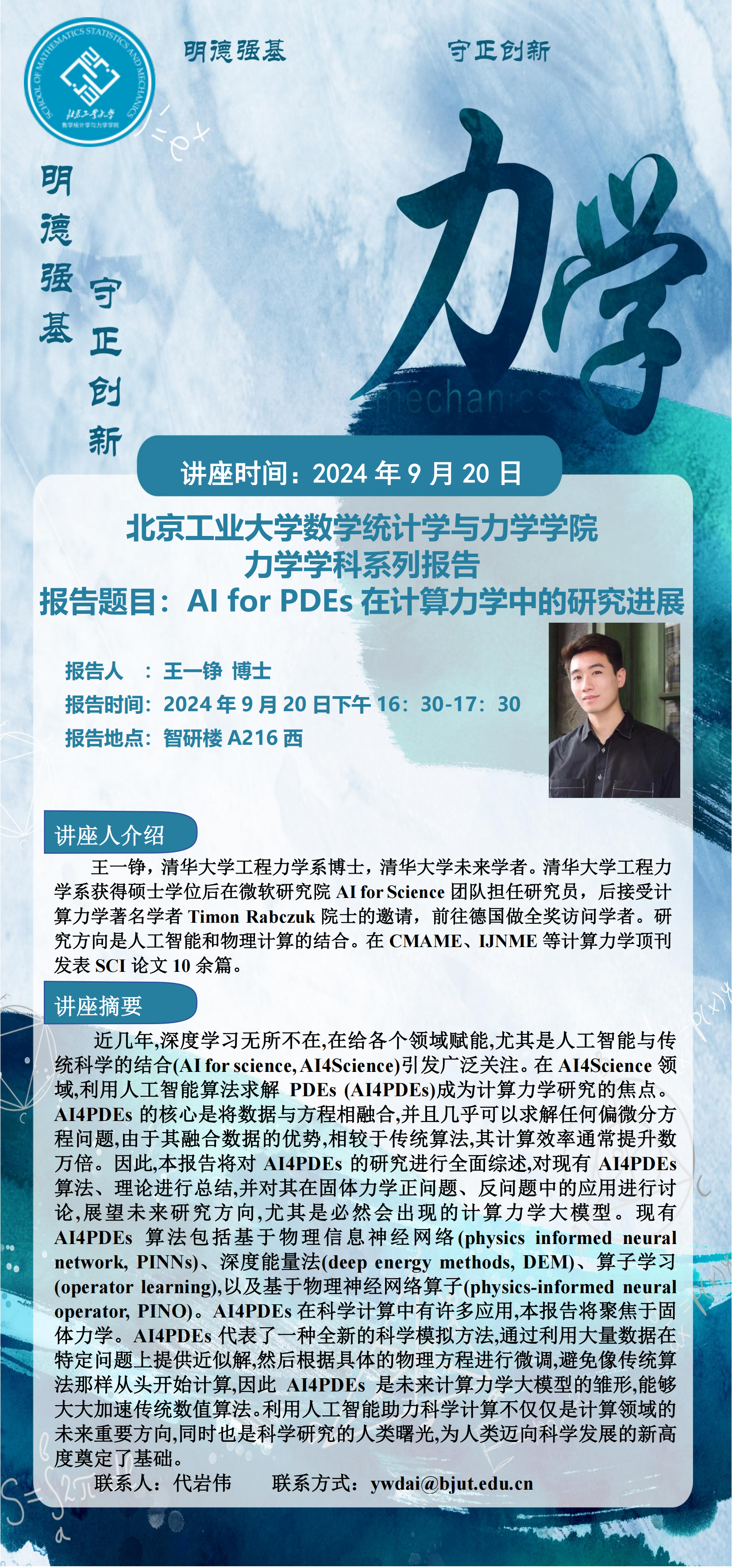 【数统力|学术报告】——AI for PDEs在计算力学中的研究进展