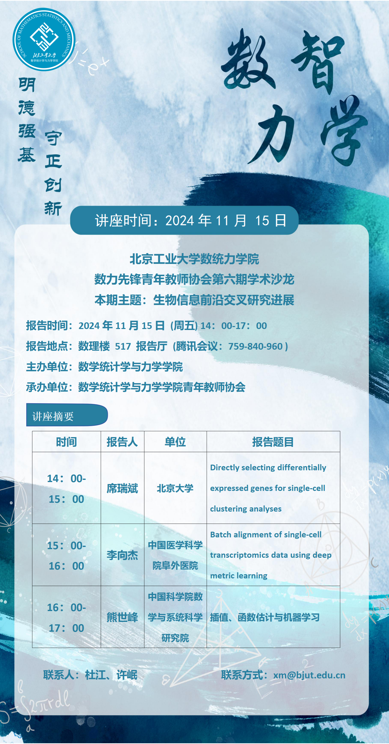 【数统力|学术报告】——青年教师协会第六期学术沙龙“生物信息前沿交叉研究进展”