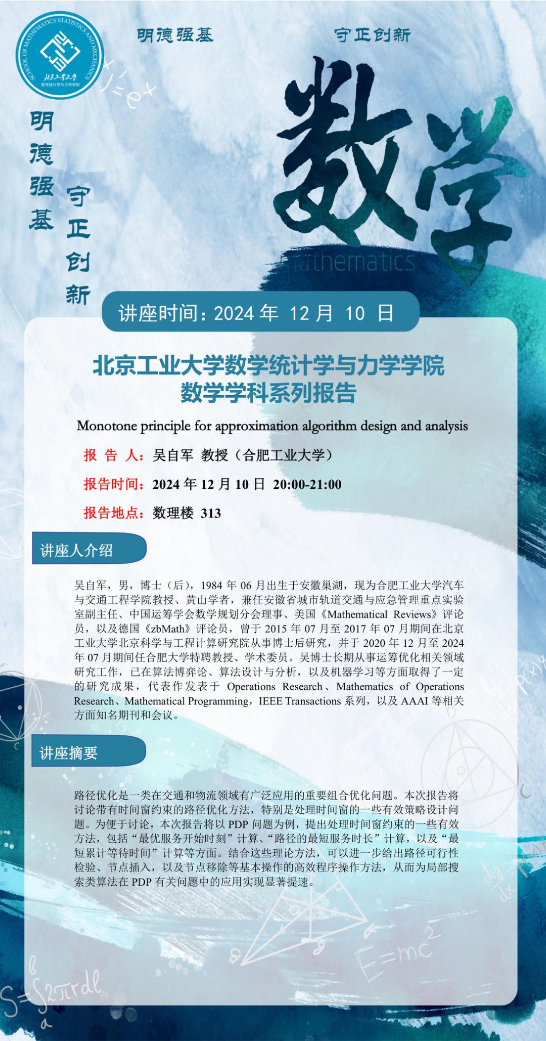 【数统力|学术报告】——Monotone principle for approximation algorithm design and analysis