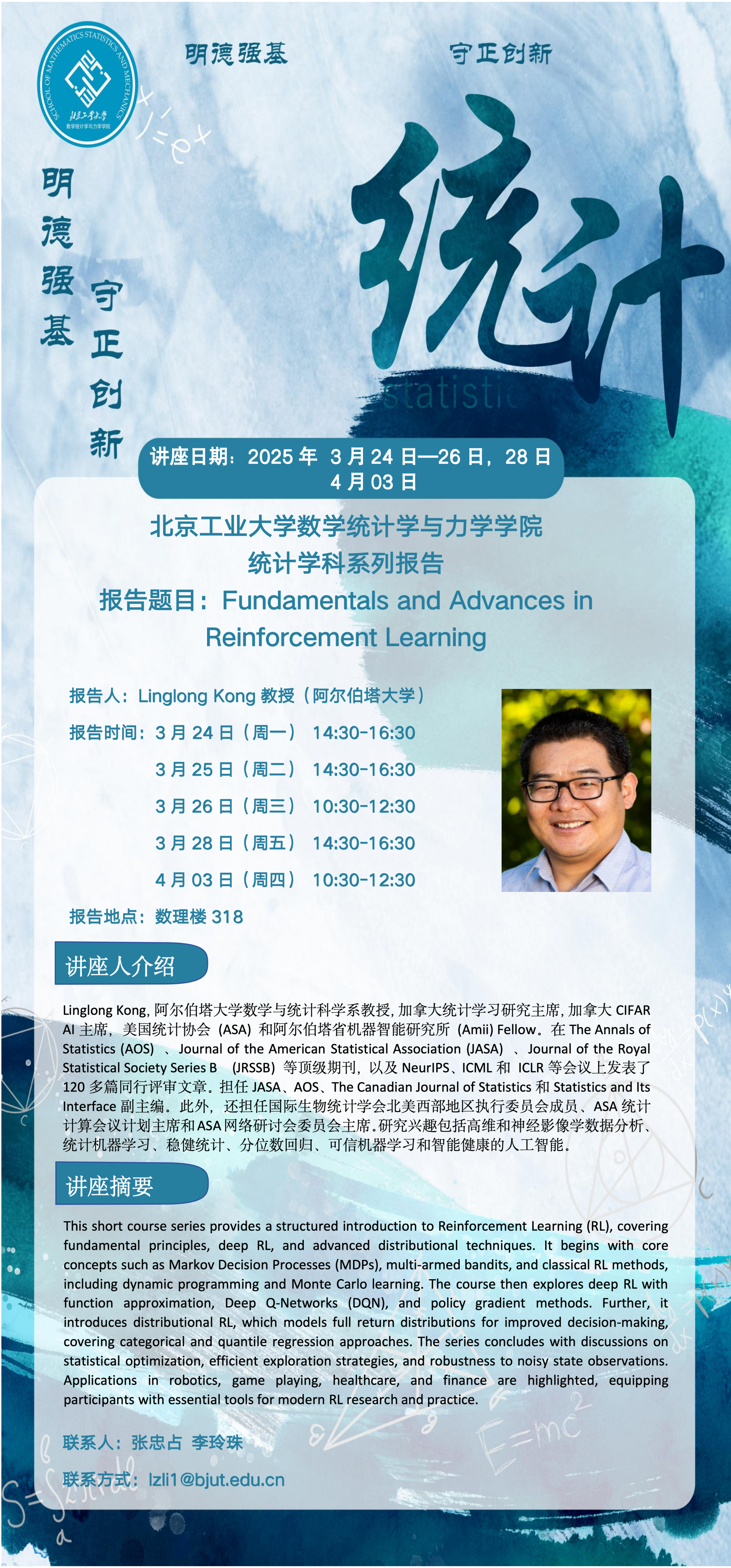 【数统力|学术报告】——Fundamentals and Advances in Reinforcement Learning