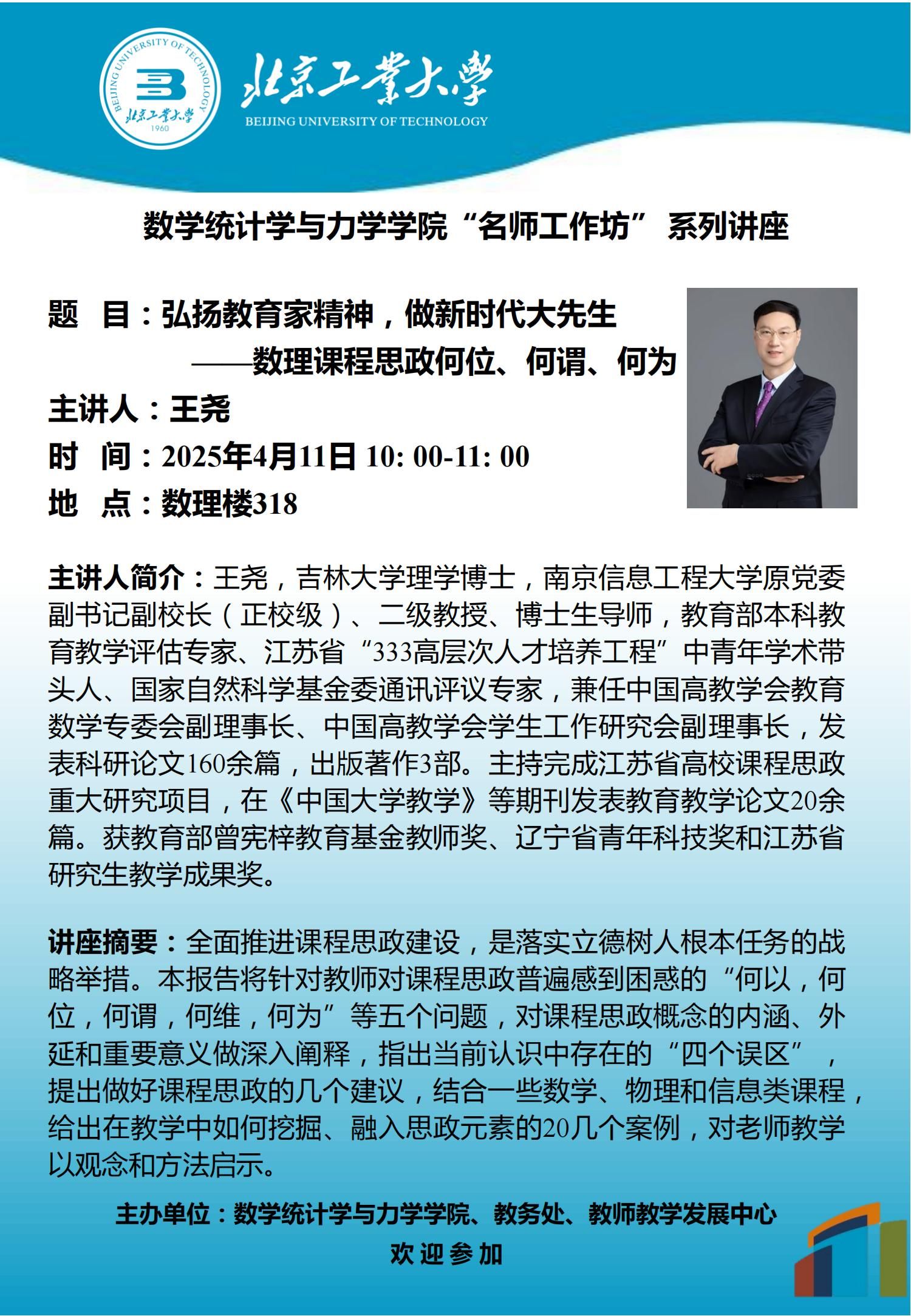 【数统力|学术报告】——弘扬教育家精神,做新时代大先生-数理课程思政何位、何谓、何为