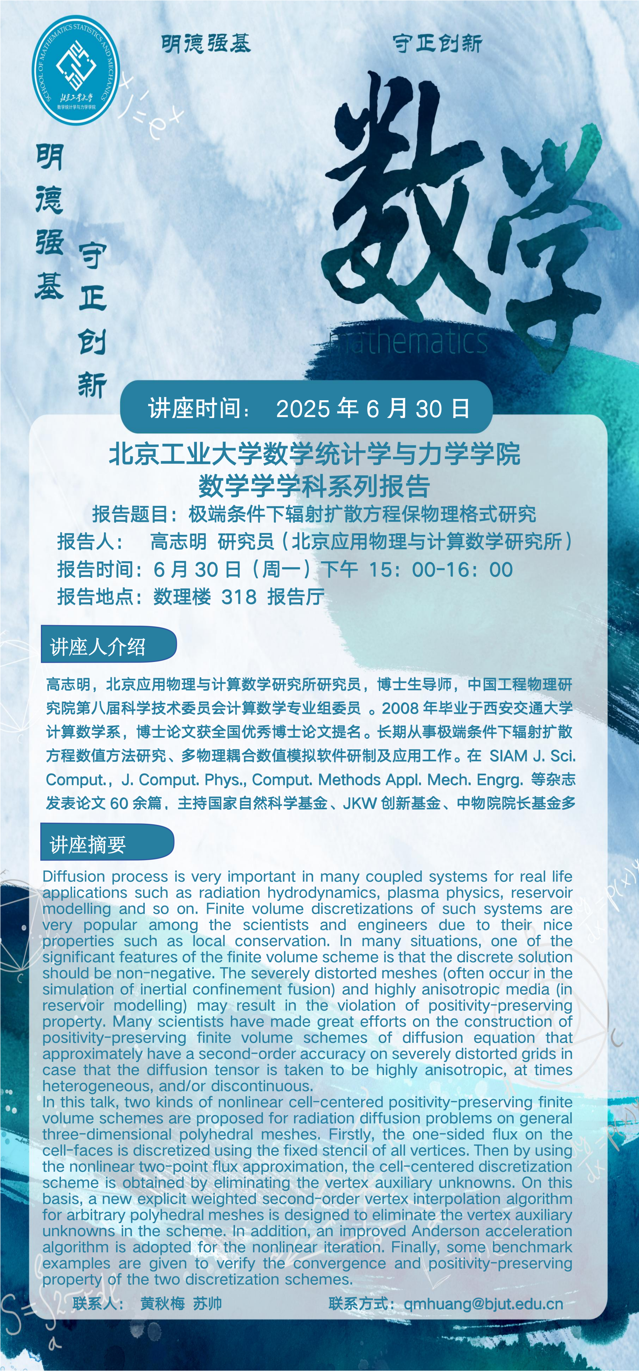 【数统力|学术报告】——极端条件下辐射扩散方程保物理格式研究