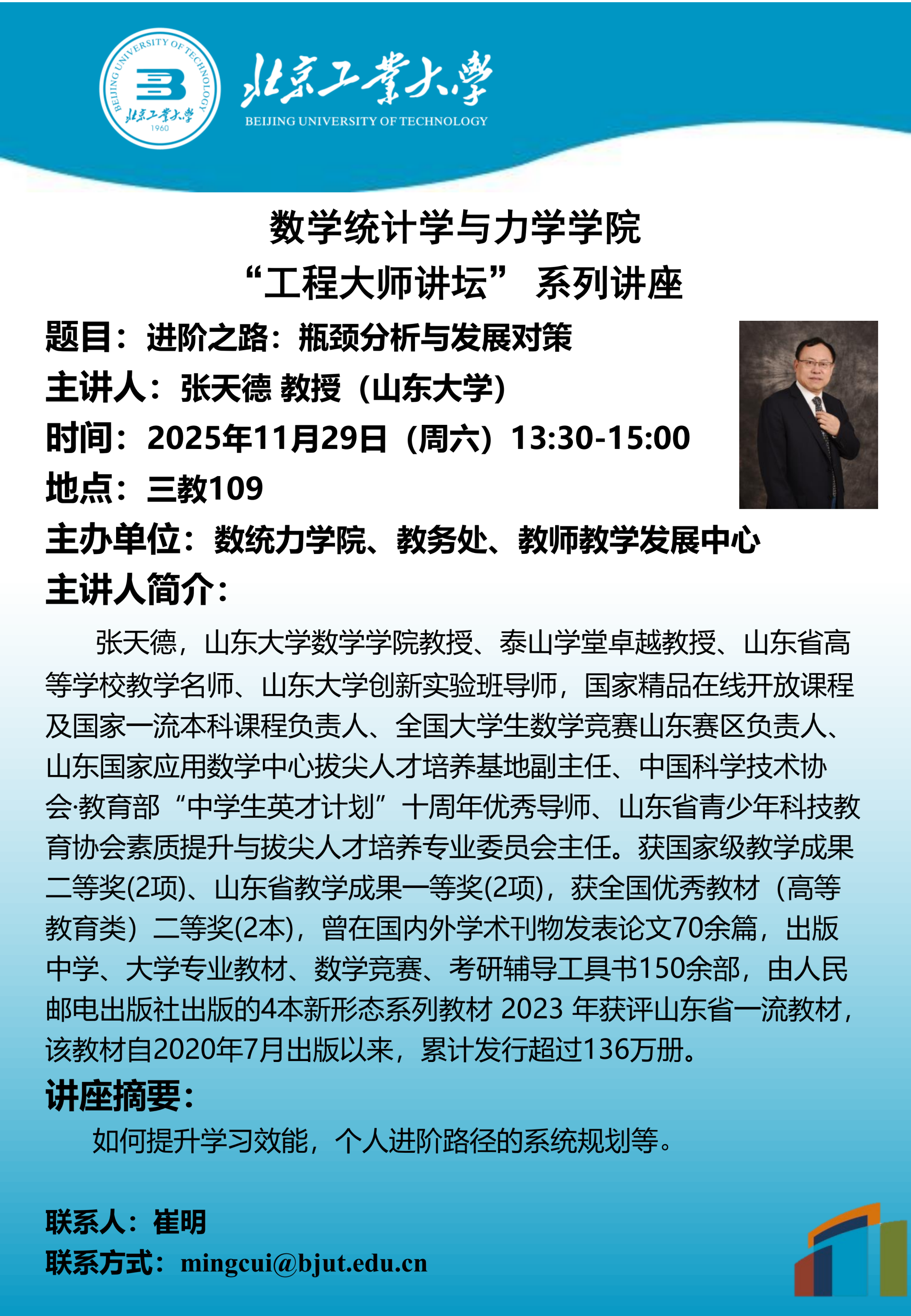 【数统力|学术报告】工程大师讲坛“进阶之路:瓶颈分析与发展对策”