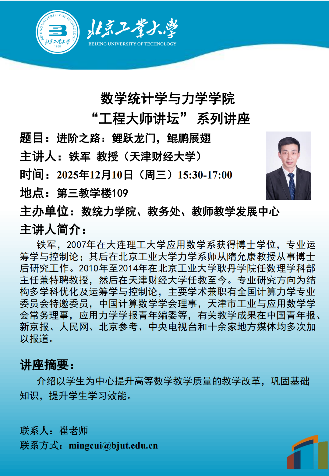 【数统力|学术报告】工程大师论坛“进阶之路:鲤跃龙门,鲲鹏展翅”