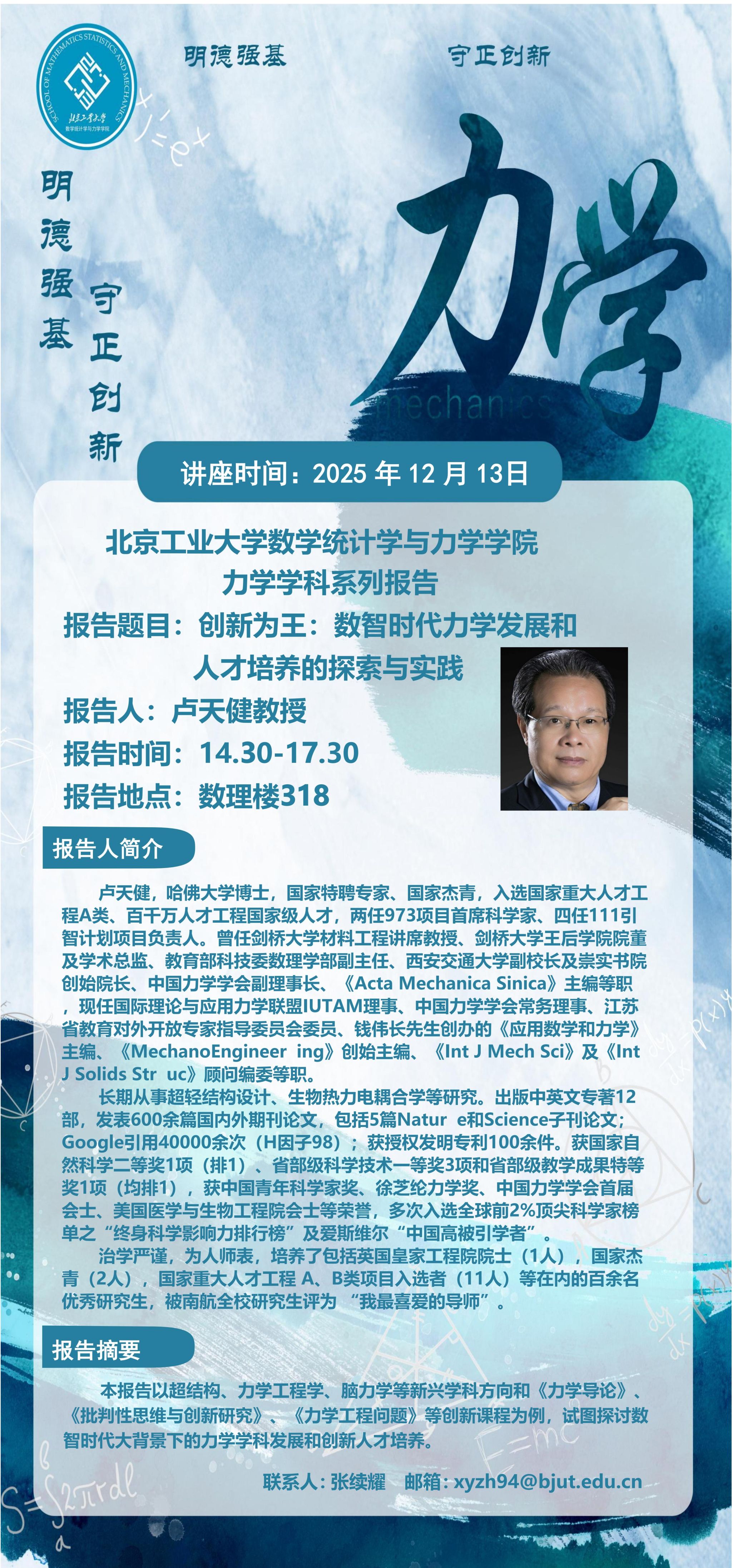 【数统力|学术报告】创新为王:数智时代力学发展和人才培养的探索与实践
