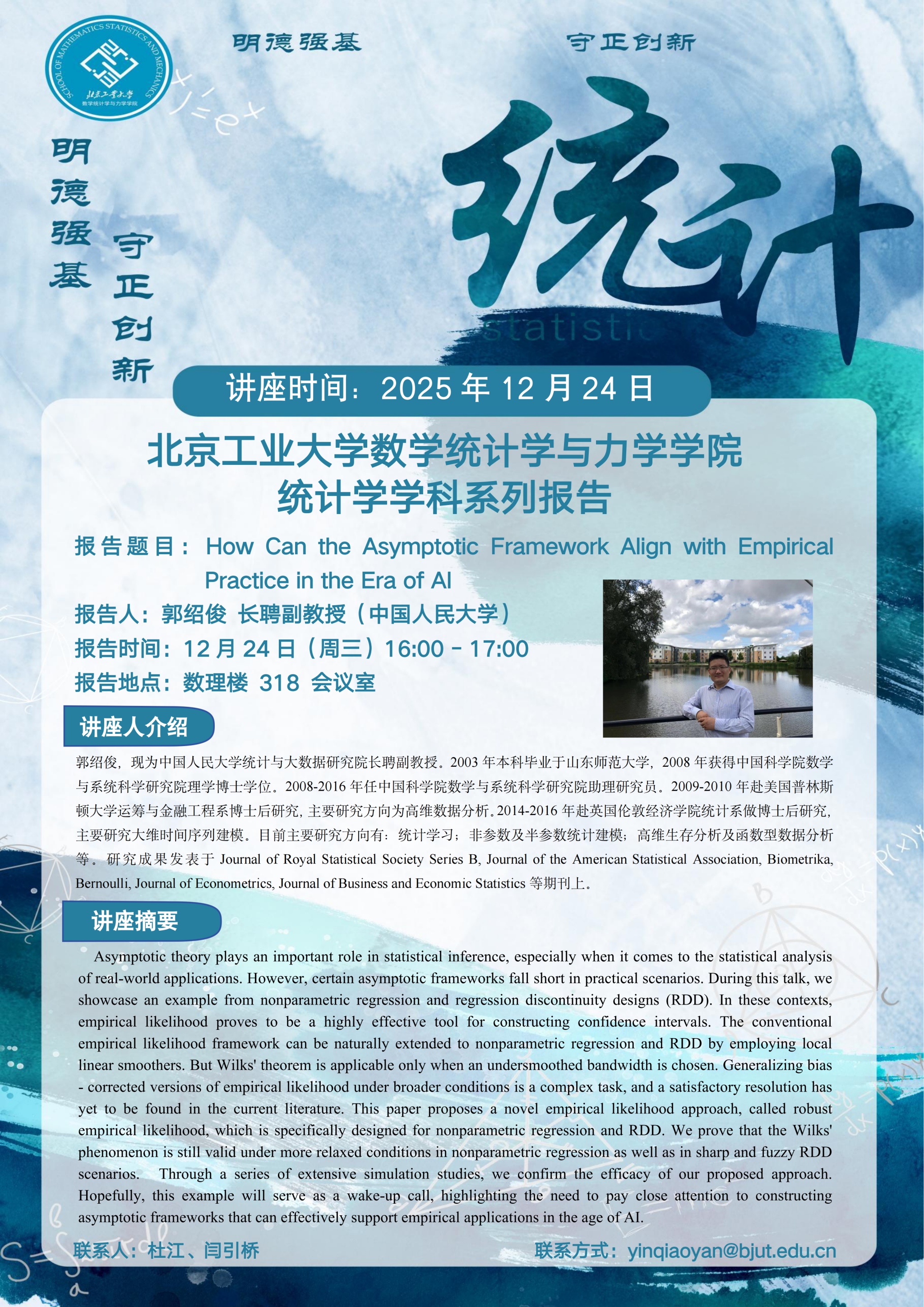 【数统力|学术报告】How can the Asymptotic Framework Align with Empirical Practice in the Era of AI
