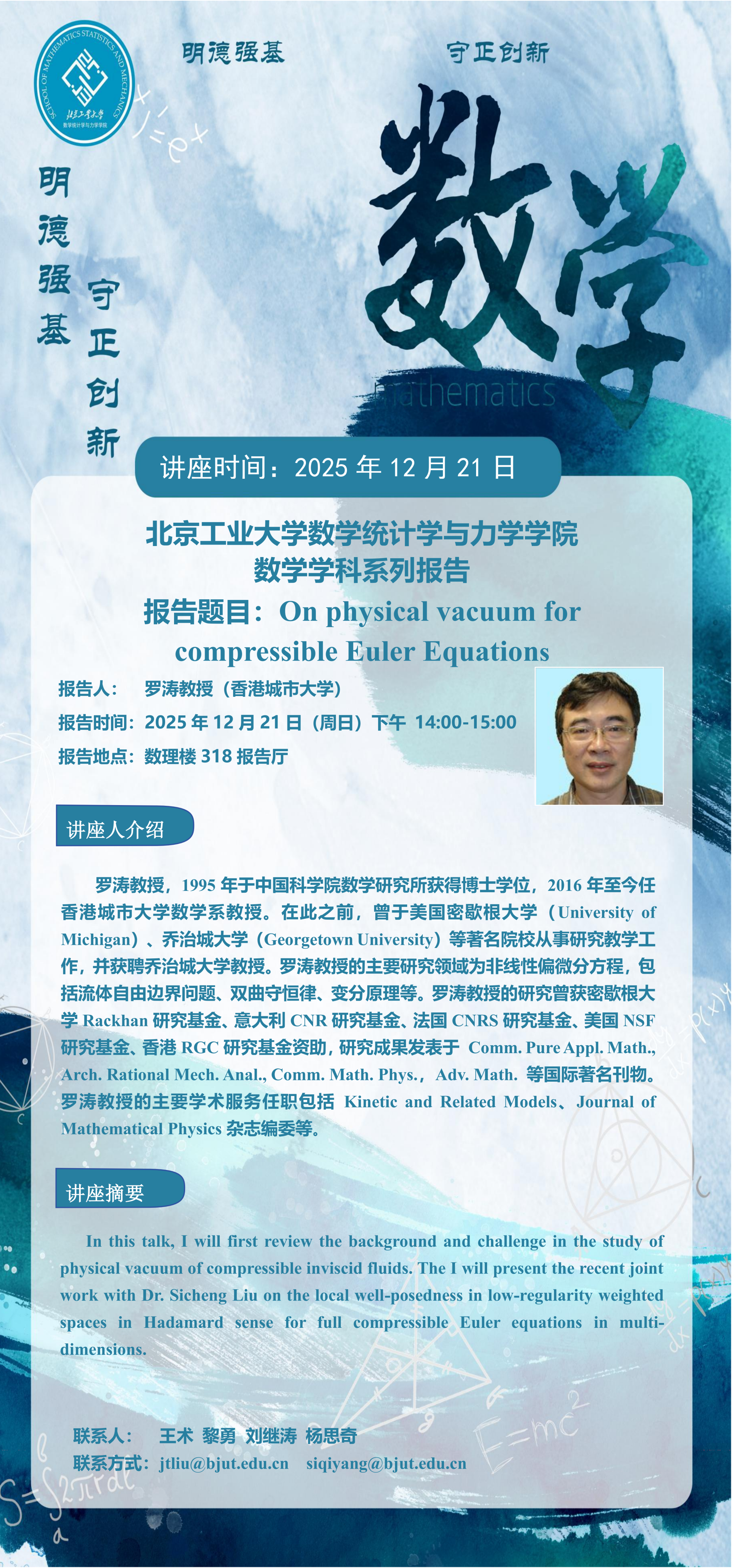 【数统力|学术报告】On Physical vacuum for compressible Euler Equations