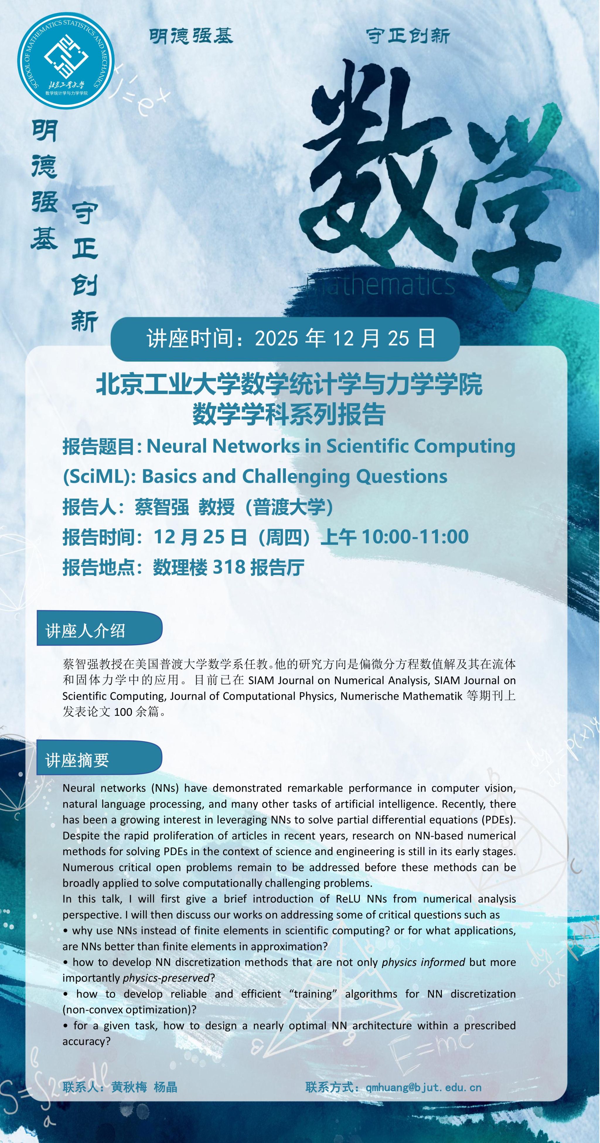 【数统力|学术报告】Neural Networks in Scientific Computing(SciML):Basics and Challenging Questions