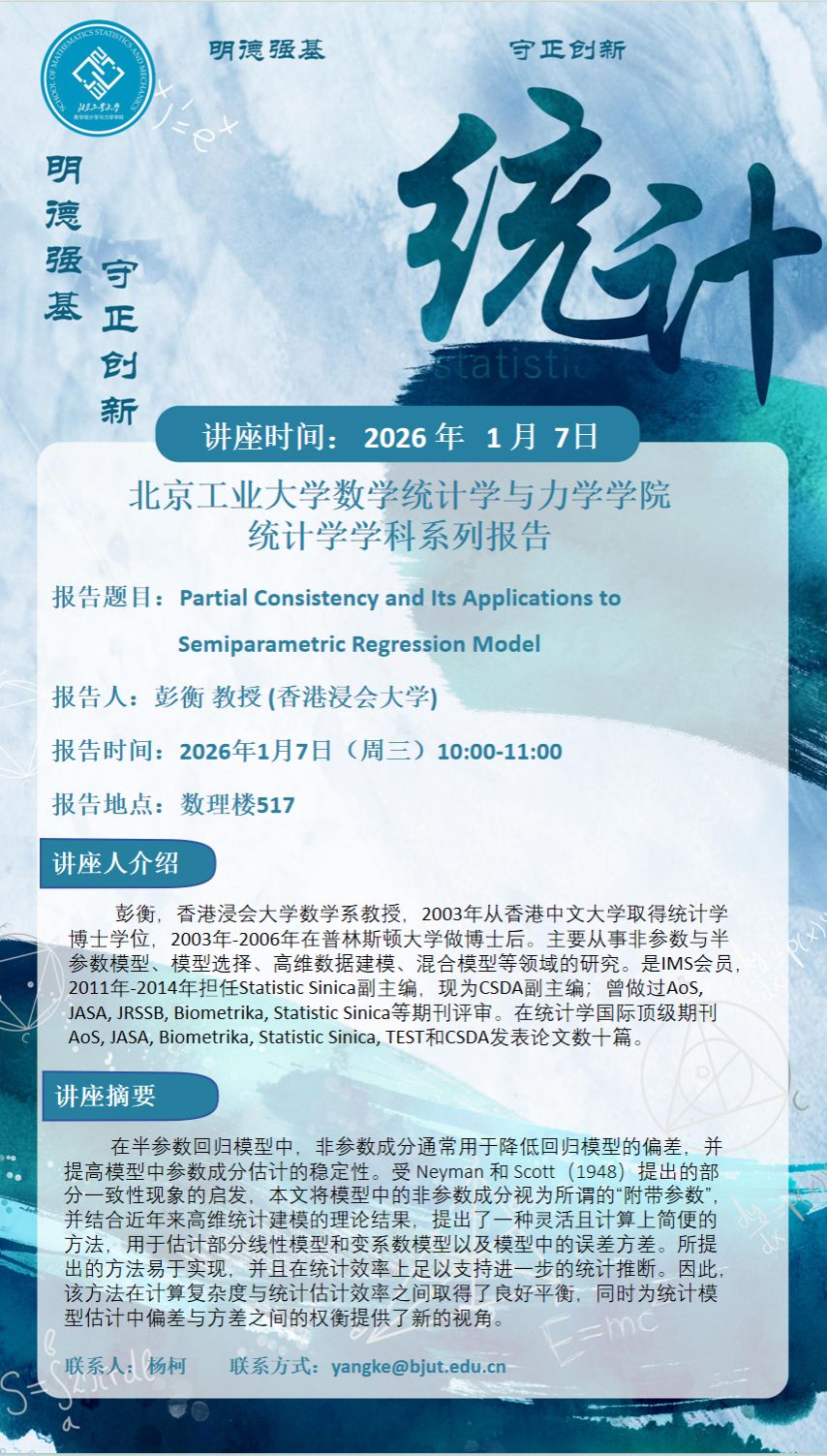 【数统力|学术报告】Partial Consistency and Its Applications to Semiparametric Regression Model