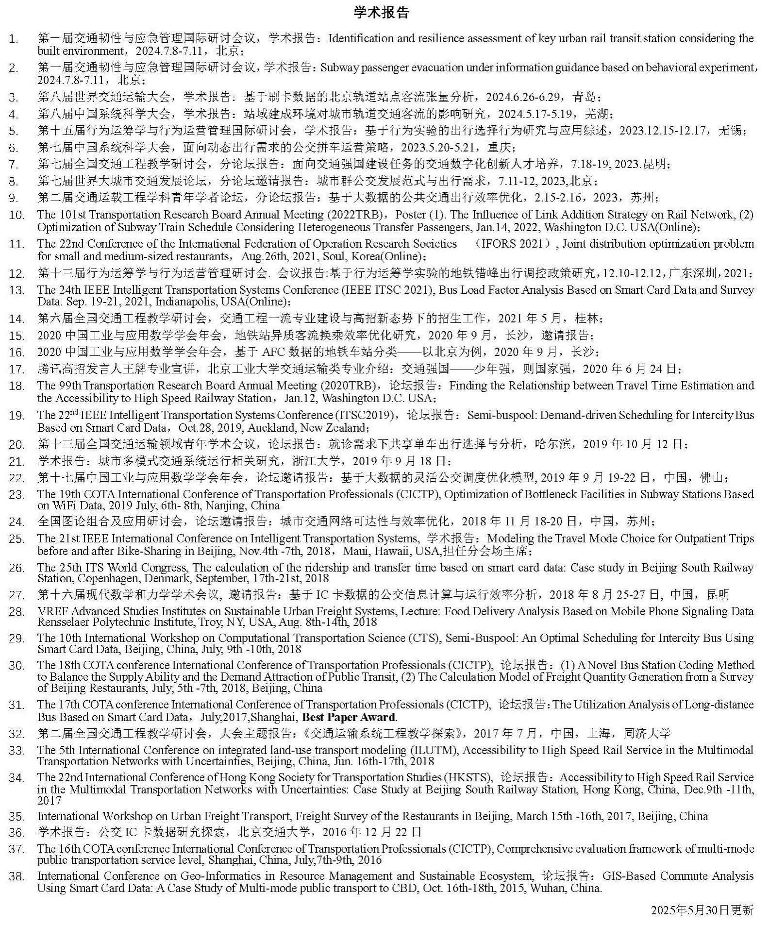 17.周雨阳*,赵聪颖,李京昆,陈艳艳,柳堤,王书灵.多类城市职住及通勤状态对出行方式选择影响比较.交通运输系统工程与信息,2025(02),26-35.EI期刊